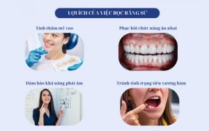 Đảm bảo khả năng phát âm: Mất răng hoặc dùng răng giả không phù hợp có thể ảnh hưởng tiêu cực đến khả năng phát âm. Việc phục hồi răng bằng mão sứ không chỉ giúp cải thiện chất lượng giọng nói, mà còn ngăn ngừa các vấn đề như tiêu xương, hô móm, từ đó giúp bạn tự tin giao tiếp hơn.